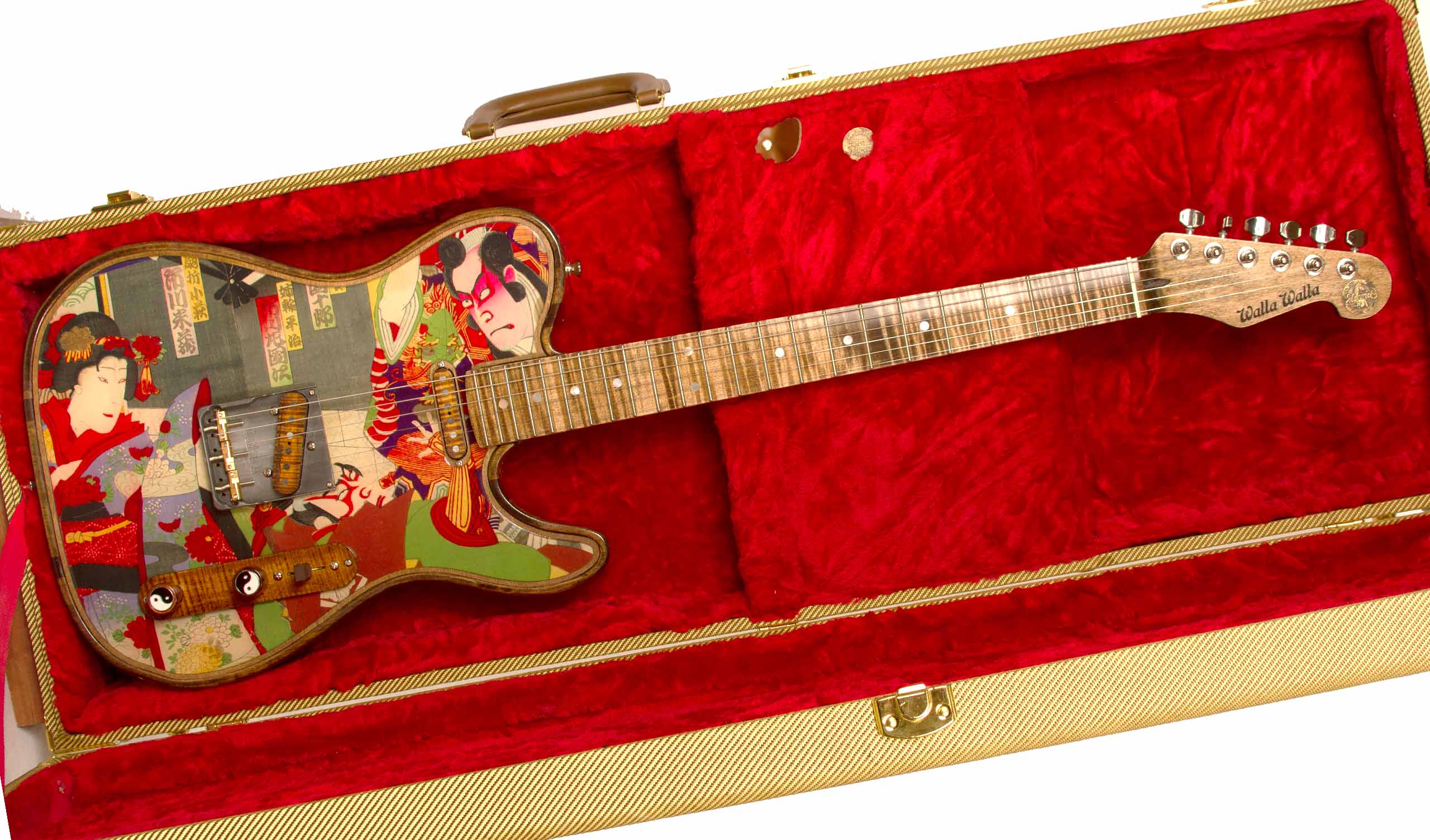 Our Maverick guitars are one-of-a-kind creations that incorporate vintage woods, skins, images, graphics, and almost anything you can imagine. These hand-crafted guitars (designed by WWGC) feature a chambered body for incredibly lightweight (5 to 7 pounds), great acoustic volume, and tone galore. The Maverick is designed to allow the player to have an instrument that is as unique as they are.