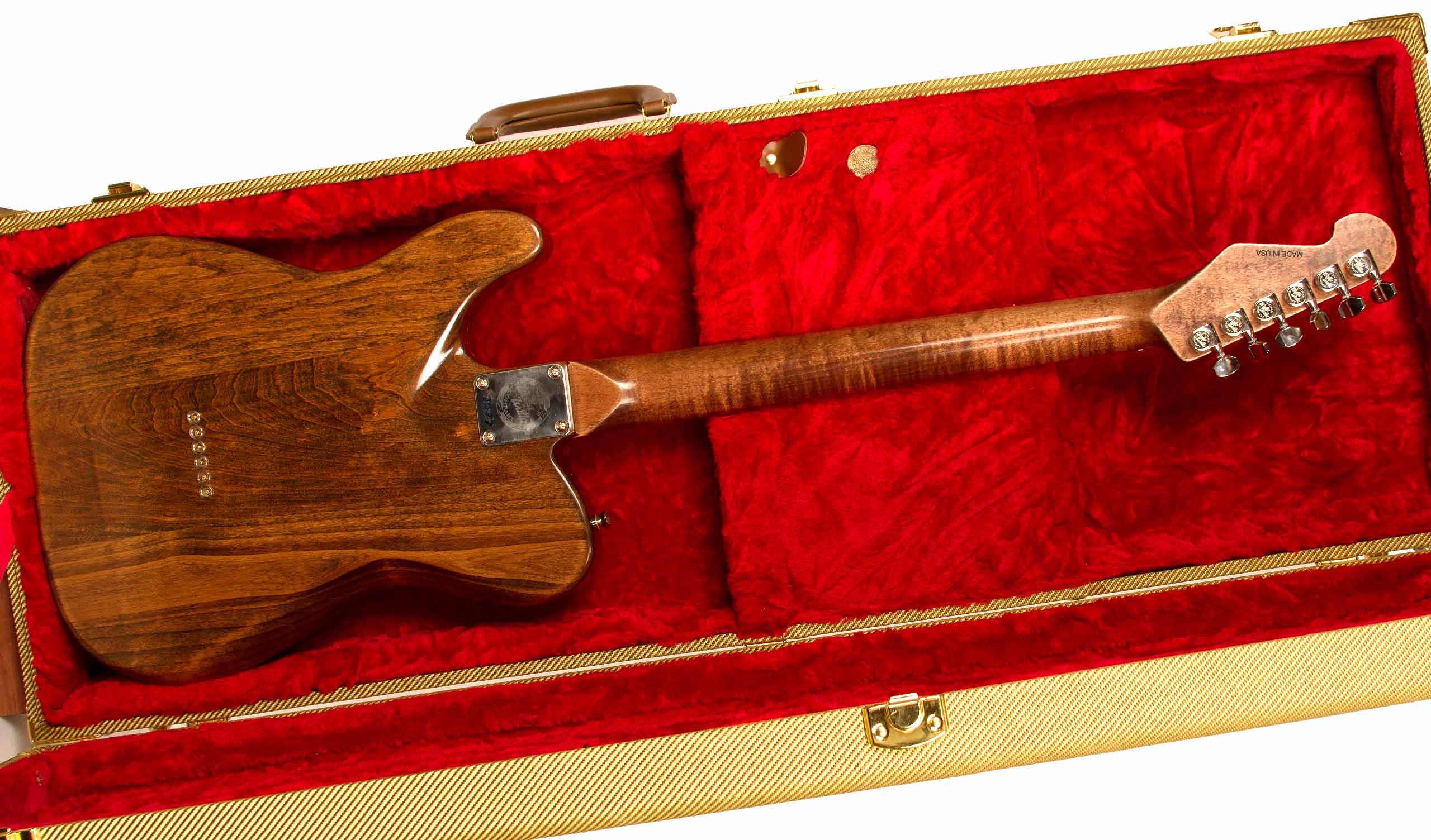 Our guitar bodies and necks are painstakingly finished with our special hand rubbed Tru-Oil process. This process lets the wood breathe and resonate at its full potential. This finish has a beautiful luster and natural texture that give our guitars warmth and a worn-in play-ability.