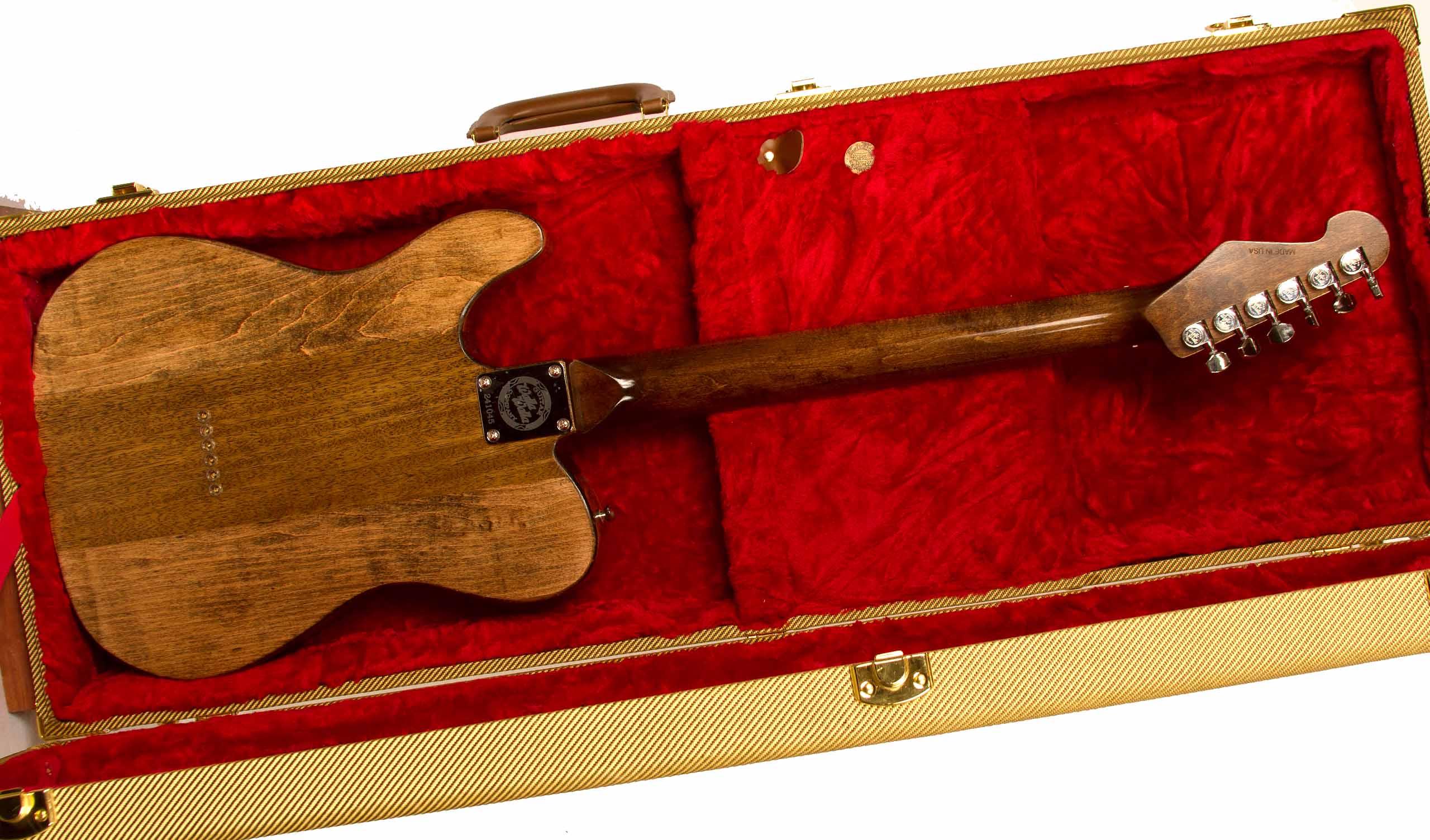 Our guitar bodies and necks are painstakingly finished with our special hand rubbed Tru-Oil process. This process lets the wood breathe and resonate at its full potential. This finish has a beautiful luster and natural texture that give our guitars warmth and a worn-in play-ability.